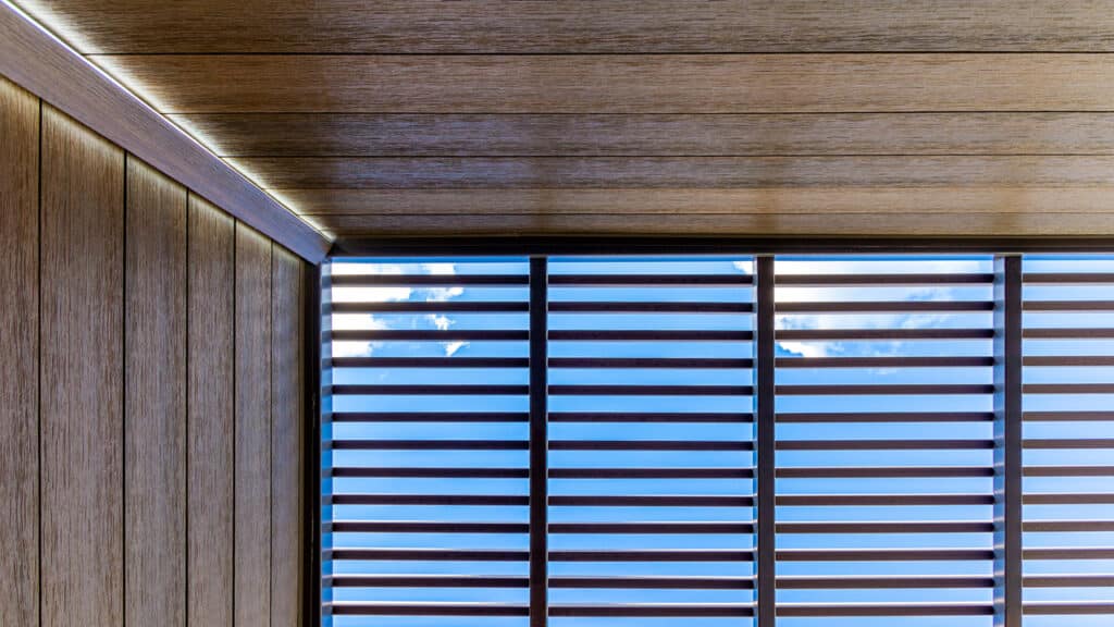 Lifespan’s natural wood-look profiles can be erected over windows as screening, or used to create pergolas over walkways, entrances or terraces to help block the sun while creating a dappled shade that allows in natural light and airflow. Installed vertically as an attractive “louvred” window dressing or along the perimeter of the roof as a decorative slatted soffit. The hollow aluminium core makes them light-weight and therefore easy for overhead installation. It’s protective polymer coating ensures low maintenance luxury that won’t scratch, fade or discolour and gives the natural wood look for an inviting outdoor experience.