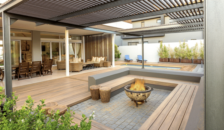 Fire pits and timber finishes used to be incompatible – but no more, thanks to advancements in composite decking and cladding technology – Chapman, Eva-Last.